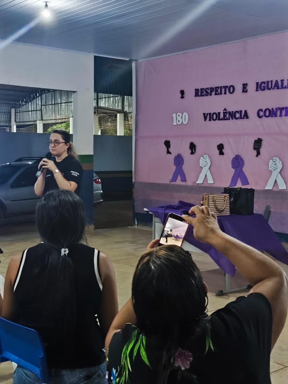 A ação contou com a participação da delegada Dra. Marcela, que atua nos municípios de Canabrava do Norte e Porto Alegre do Norte, trazendo orientações, esclarecimentos e reforçando a importância da denúncia e da proteção às vítimas.